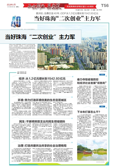 40年,香洲大地滄桑巨變。人均GDP從0.1萬美元增長到2.31萬美元,人民生活愈加殷實;從全國第一家“三來一補”企業(yè)香洲毛紡廠的成立,到全球最大家用空調(diào)企業(yè)格力電器的崛起,香洲的產(chǎn)業(yè)體系愈加完善;從只有“一條街道、一家飯店、一個紅綠燈”的邊陲小鎮(zhèn)到現(xiàn)代化的濱?;▓@城市,香洲的城市環(huán)境愈加宜居;從率先完成“村改居”到全面實施基層權責改革,香洲的引領作用愈加凸顯……