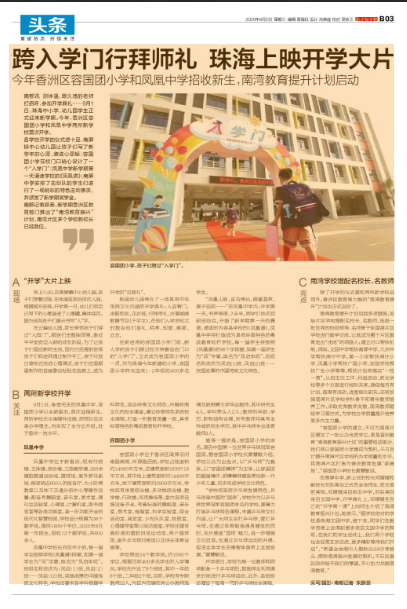 除了開學(xué)的儀式感和兩所新學(xué)校啟用外,香洲區(qū)教育局力推的“南灣教育提升”計(jì)劃也正式啟動了。