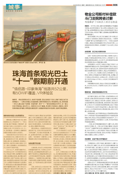 乘坐雙層觀光巴士,徜徉于情侶路,直達沿線各個景點,感受“浪漫之城”的獨特魅力……記者從珠海公交集團獲悉,首條珠海觀光巴士專線即將上線。該條線路一共52公里,起名“情侶路-印象珠?!保瑢⒂凇笆弧鼻霸谇閭H路正式開行。與一般公交車不同的是,觀光巴士上,有整車5GWiFi覆蓋,并設有VR體驗區(qū),游客車上即可玩轉(zhuǎn)珠海眾多海島,探索虛擬海底世界;車廂提供自助飲料售賣機,提供充電寶服務。