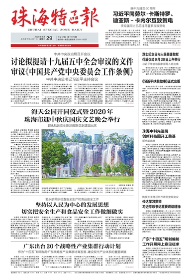 來(lái)源:珠海特區(qū)報(bào) 01版 2020年9月29日