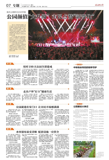“前幾天,我聽(tīng)單位同事講,海天公園今天正式開(kāi)園,管養(yǎng)提升期間,建設(shè)了四季步道、鋪設(shè)了中央大草坪,二期還新建了兒童樂(lè)園、溫室植物園、打造了水簾瀑布……晚上下班后專(zhuān)程過(guò)來(lái)瞧瞧,公園果然建得很漂亮,跟以前比變化太大了?!痹诤L旃珗@,市民陳女士接受記者采訪(fǎng)時(shí)說(shuō)道。