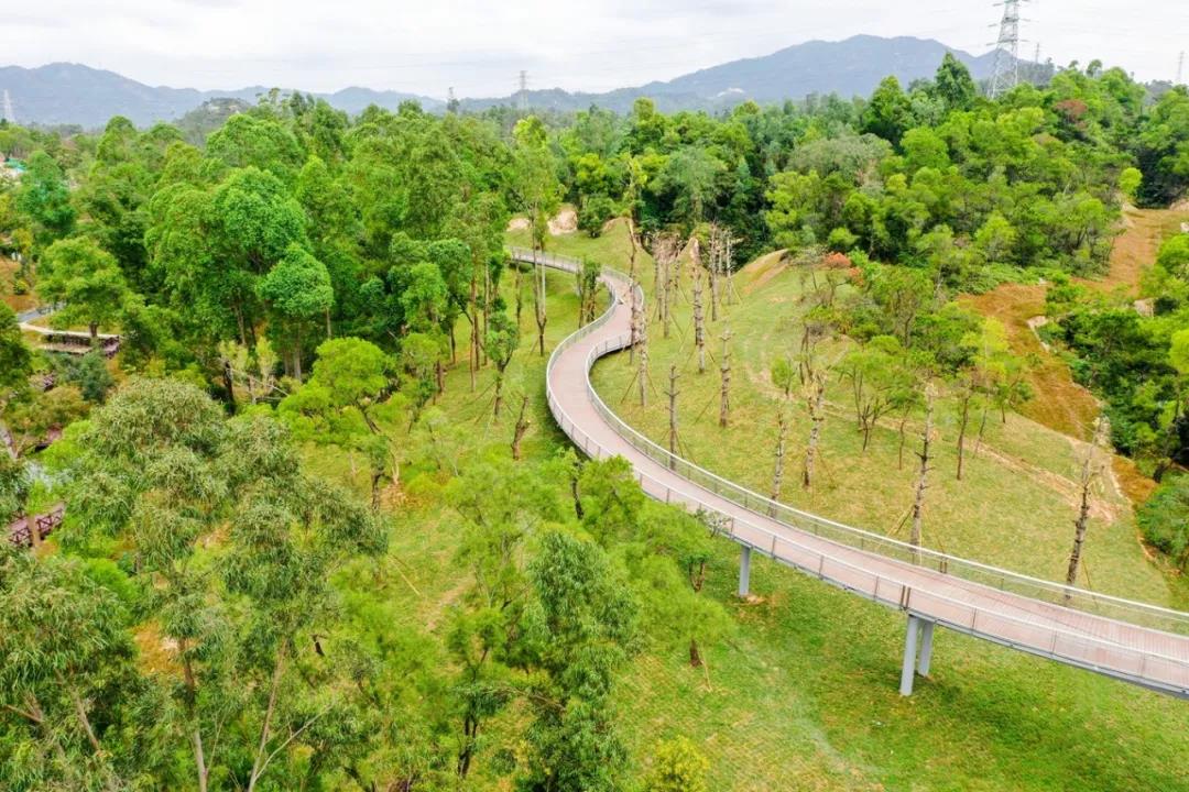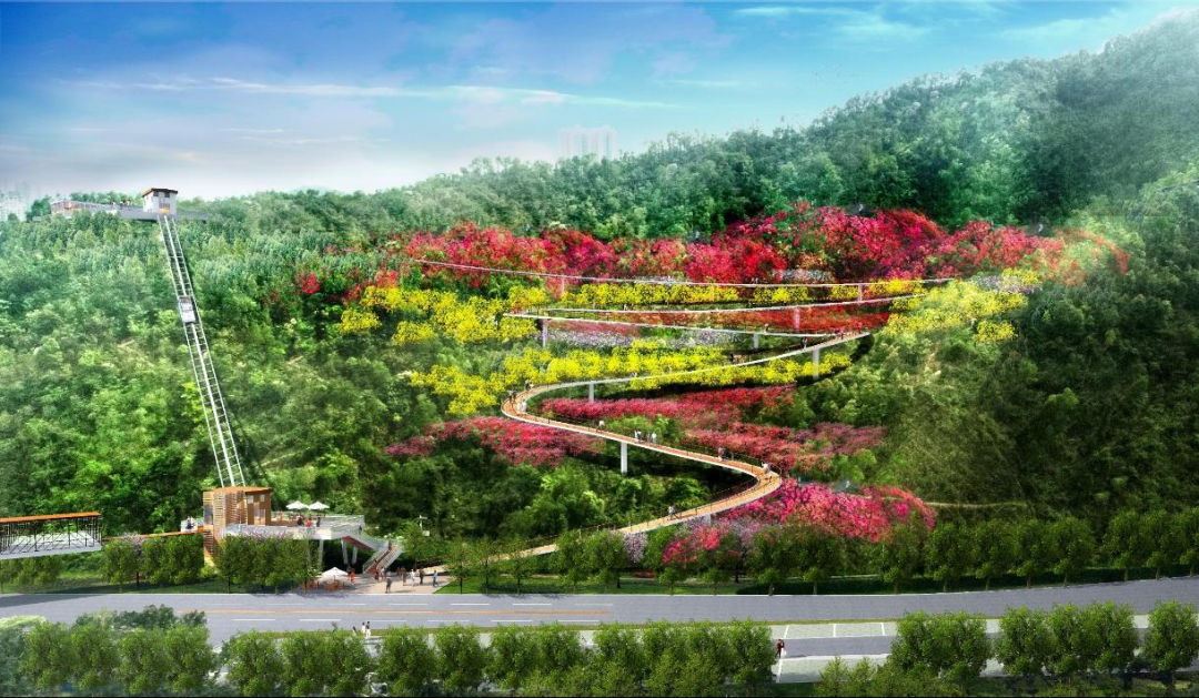 板樟山山地步道包括空中步道、森林步道、景觀橋、山頂驛站、無障礙垂直交通系統(tǒng)設(shè)施等子項及配套的景觀照明、安監(jiān)系統(tǒng)、標(biāo)識系統(tǒng)、休憩設(shè)施、綠化修復(fù)等。