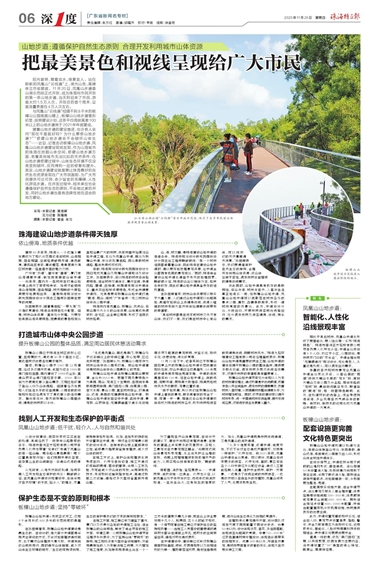 相比于其他城市,鳳凰山步道也形成了更智能化、更人性化等一系列“珠海特色”。珠海市香洲正方控股有限公司項(xiàng)目負(fù)責(zé)人代井龍介紹,步道全線共設(shè)有8個(gè)入口,均位于小區(qū)、公園附近,是市民家門口的“家樂徑”。步道全程采用“無障礙通行”規(guī)劃設(shè)計(jì),無論是老人、兒童還是殘疾人,可以滿足出行需求。