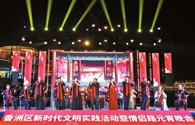 本報訊 記者康振華報道:火樹銀花元宵夜,彩燈萬盞熠霞流。2月5日晚,正方城市陽臺輕歌曼舞、琴聲悠揚,“正元宵·方春意”2023年香洲區(qū)“相約情侶路·音樂進萬家”元宵晚會暨“音樂進萬家·共奏文明曲”新時代文明實踐活動在此精彩上演,為觀眾獻上了一場喜慶祥和、熱鬧歡樂的視聽盛宴,吸引了大量市民游客駐足觀看,共享精神文化大餐。