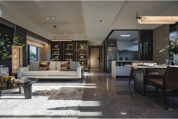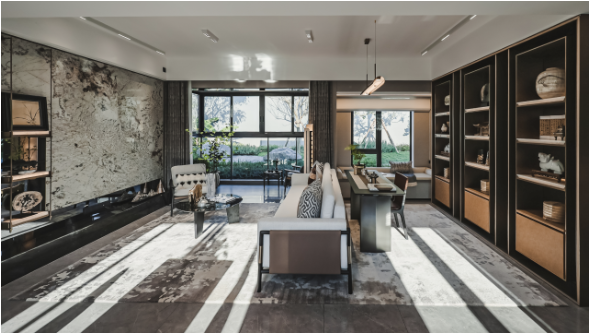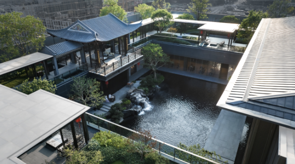 沿襲中華傳統(tǒng)建筑的歸家禮序,項目采用了五進院的建筑規(guī)格和標準,從社區(qū)主入口行至內部,匠心可謂滲透在每一寸細節(jié)之中。率先亮相的是由傳統(tǒng)嶺南建筑演變而來的長達80米的壯闊門樓,雙重屋檐的設計融合現代元素,沉穩(wěn)而大氣。漫步進入星級入戶大堂,目之所及皆是風景。