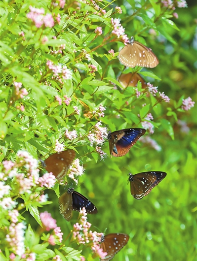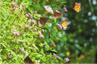 一只、兩只、三只……正是珠海良好的生態(tài)環(huán)境,引來(lái)成群的蝴蝶在此聚集越冬。通常,氣溫下降到15攝氏度以下,大部分蝴蝶會(huì)以蛹、卵或幼蟲的形式越冬,只有一些斑蝶會(huì)如同候鳥般向南遷徙,躲避低溫的氣候,尋覓繁衍生息的樂(lè)土。