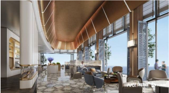 △北側(cè)緊鄰鹽梅路,南側(cè)可直達沙灘,東側(cè)連橋可達小梅沙海洋世界,西側(cè)比肩小梅沙海濱公園,即將面世的深圳美高梅酒店不僅僅是一項深入自然、兼具藝術(shù)感的酒店項目,同時也與周邊聯(lián)通呼應,共同打造了小梅沙特色的“藍色”生活圈。圖為行政酒廊。