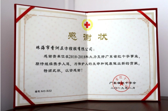 珠海市香洲正方控股有限公司總經理助理黃少蘭代表公司出席會議。會議特設省領導致謝捐贈人環(huán)節(jié),香洲正方因貢獻突出,榮獲多項榮譽。