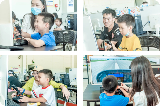 隨后,進(jìn)入到了航天知識分享和模擬器實踐操作環(huán)節(jié),資深的專業(yè)航空講師不僅給孩子們分享航空知識,還介紹了模擬器的綜合儀表,導(dǎo)航儀表、油門、操縱桿等結(jié)構(gòu)及其操作方式,小朋友們一邊認(rèn)真地學(xué)習(xí)基本原理,一邊按照航空講師的步驟操作,完全沉浸在飛行模擬器、航模模擬器的現(xiàn)場實操中。“我也想開飛機(jī)在天上飛!”一個孩子興奮地對媽媽說道。