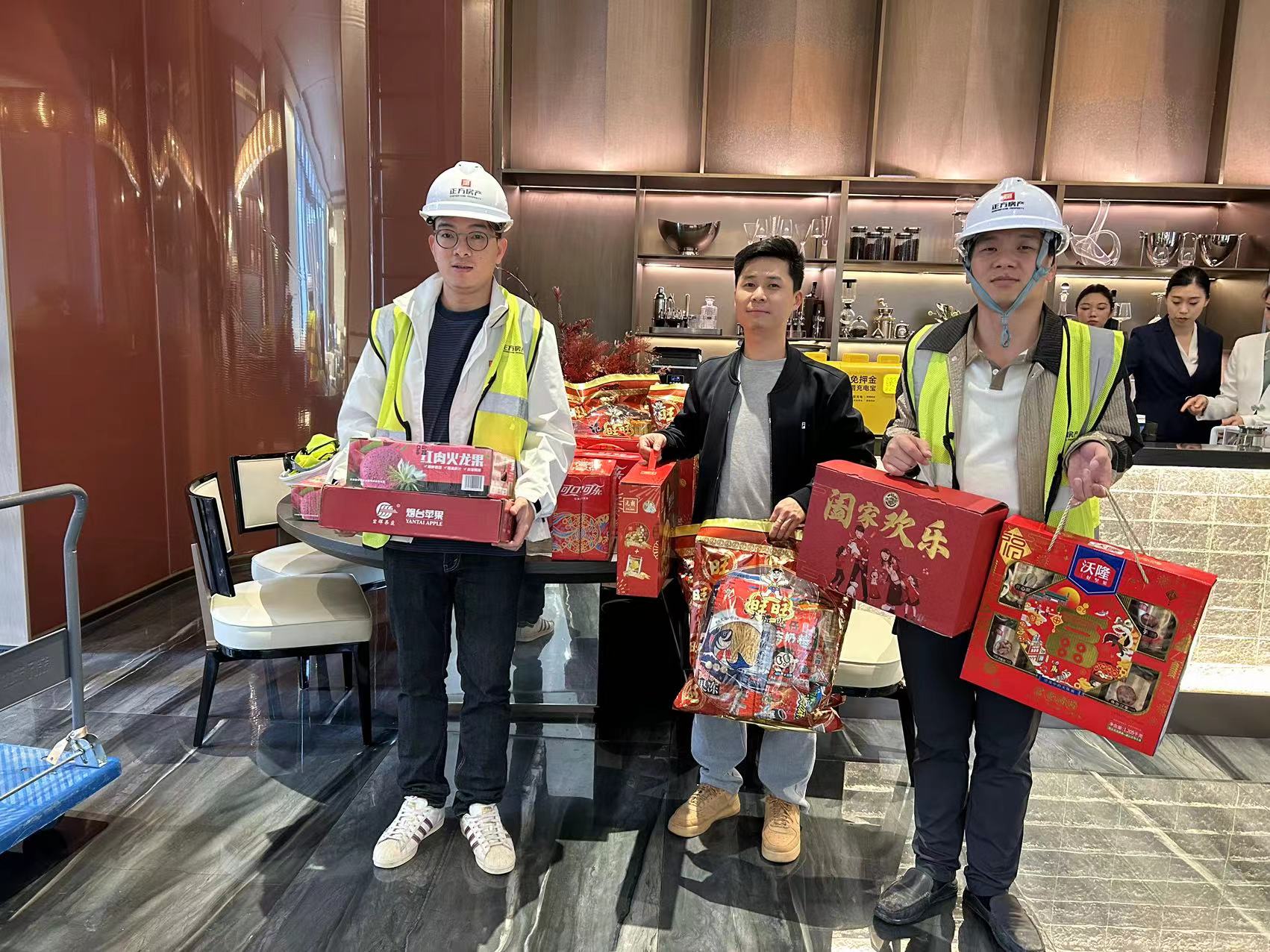 正方·南灣首府項目于春節(jié)假期前加快推進工程進度,正方城發(fā)集團工會小組前往項目慰問,送上各式各樣的“年貨大禮包”,將關(guān)愛與溫暖送到一線職工的心坎上。